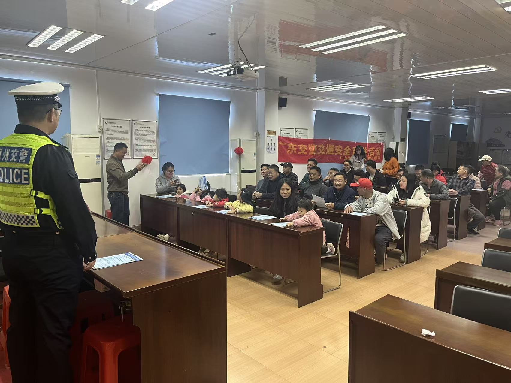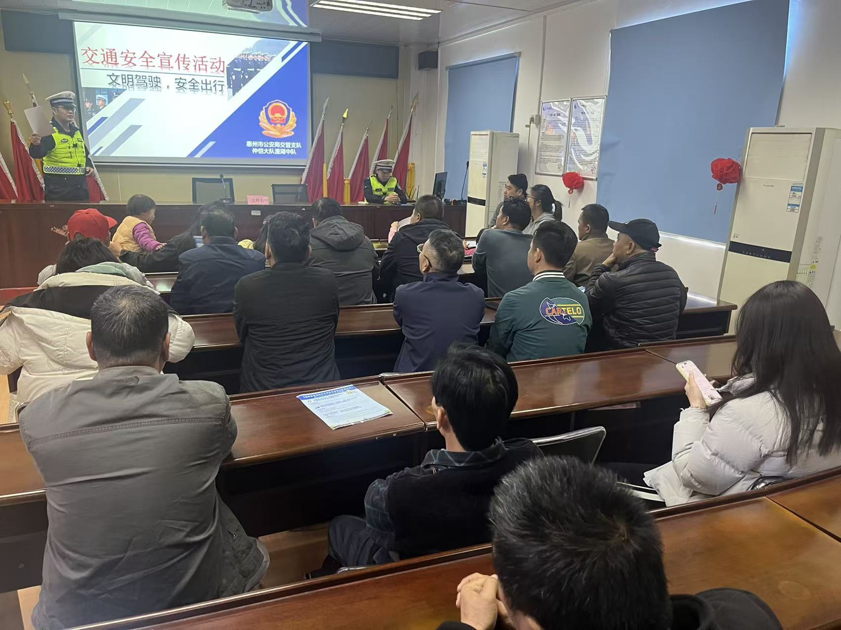 2月9日,惠州市公安局交通管理支队仲恺大队联合赤岗党群服务中心,在赤岗村组织赤岗批发部市场单位员工开展春节前交通安全宣传活动。